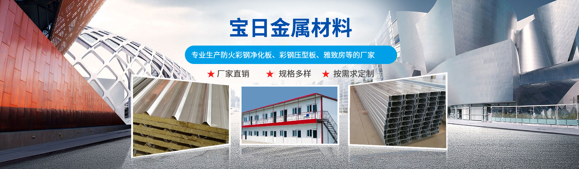 專業(yè)生產(chǎn)夾芯板、防火彩鋼凈化板、彩鋼壓型板、雅致房、C/Z型鋼,樓承板的廠家